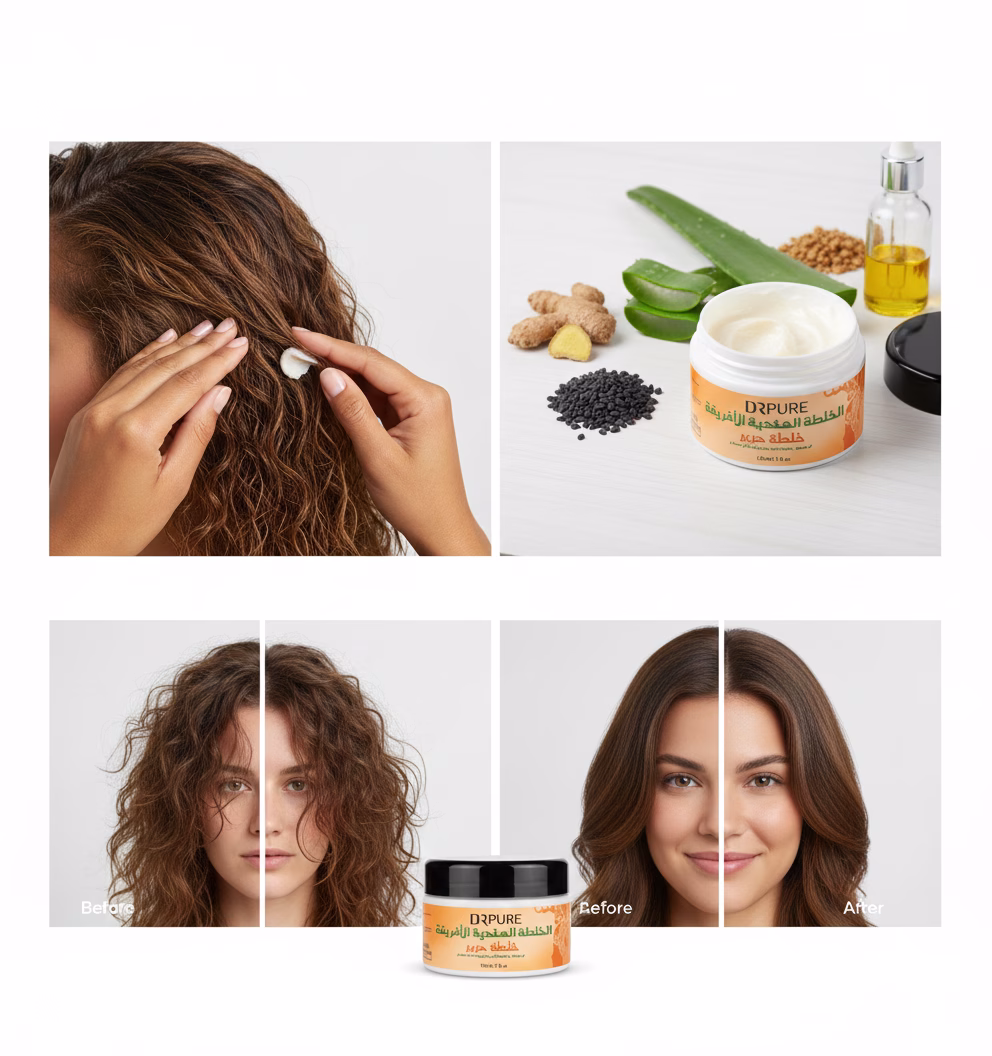 خلطة طبيعية 100% بتركيبة غنية تعالج مشاكل الشعر من الجذور حتى الأطراف، وتمنحك نعومة وفرد ولمعان بدون مواد كيميائية.